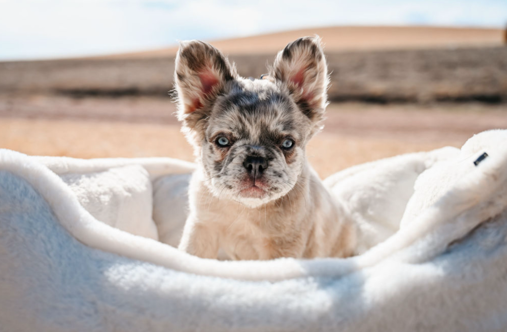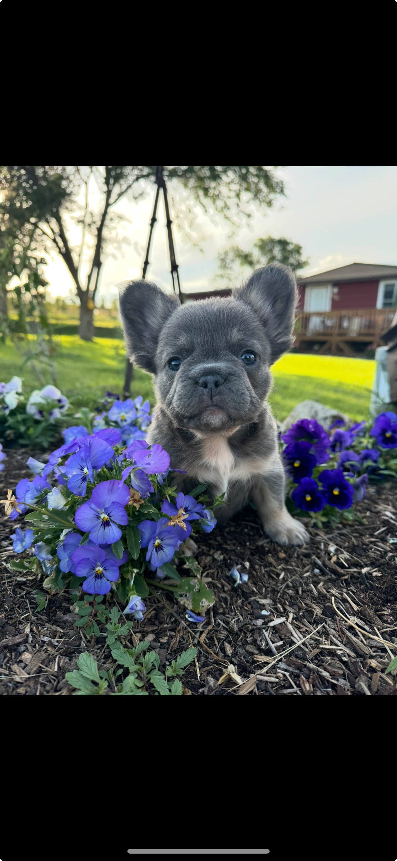 Our French Bulldog puppies are raised in the comfort of our home, surrounded by love, snuggles, and plenty of cuddles. Each puppy comes with AKC papers, litter-box training, detailed genetic health and color records of the parents, vaccinations, deworming, a microchip, a 1-year health warranty, and an extensive vet check. We also include a special care package to help you welcome your royal baby into their new home. This package features premium puppy food, treats, toys, NuVet Supplements, and so much more.